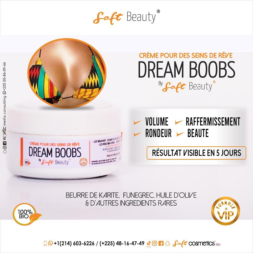 Dream Boobs est une crème fait à base d’ingrédients naturels pour remonter, tonifier et rendre les seins bien galbés et super fermes.